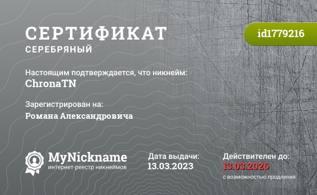 The nickname "ChronaTN" has been used by me since March 12, 2023.