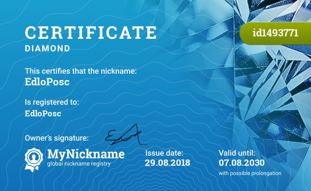 certificate for nickname: EdloPosc (id1493771)
