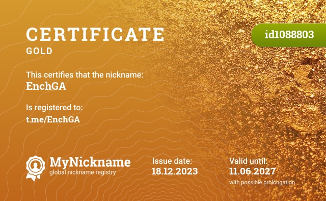 Gold ? certificate for nickname: EnchGA (id1088803)