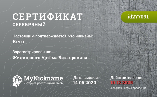 certificate for nickname: Keru (id277091)