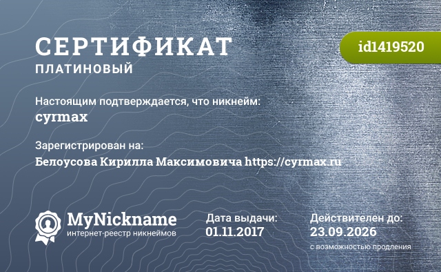 Возник после несложного скрещивания первых букв имени на английском и отчества (cyrill + maksimovich = cyrmax). Впервые использован на habrahabr.ru, а затем стал чем-то вроде торговой марки или, если хотите, официального лица в IT сфере.
