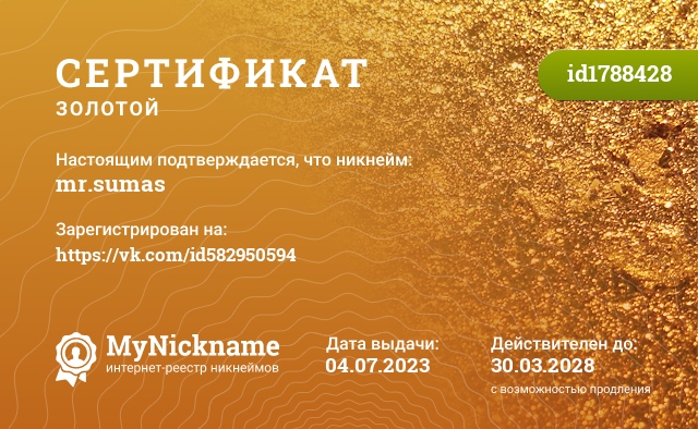 certificate for nickname: mr.sumas (id1788428)