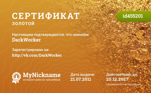 certificate for nickname: DarkWorker (id455201)