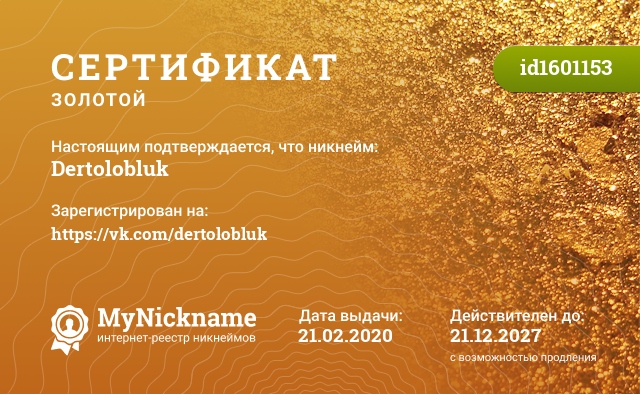 Certificate for nickname Dertolobluk is registered to: https://vk.com/dertolobluk