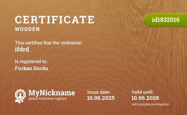 Nickname ifdrd is registered to Furkan Durdu. Issued certificate ID1832016. Issue date 10.06.2025.