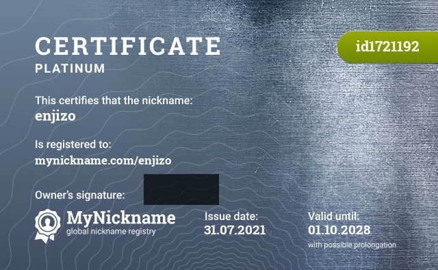 certificate for nickname: enjizo (id1721192)