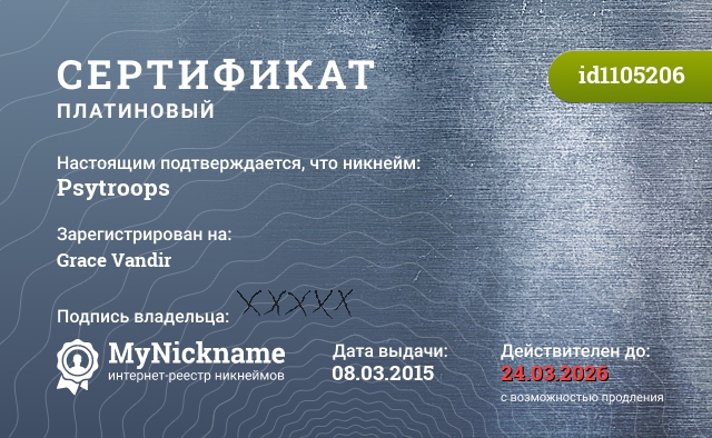 Platinum ? certificate for nickname: Psytroops (id1105206)