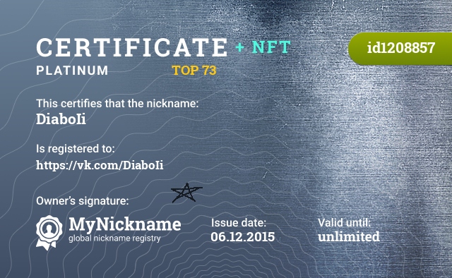 NFT на никнейм DiaboIi Etherscan OpenSea Rarible