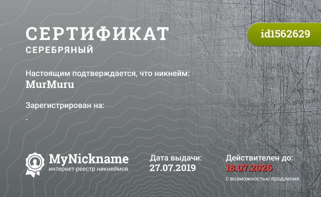 certificate for nickname: MurMuru (id1562629)