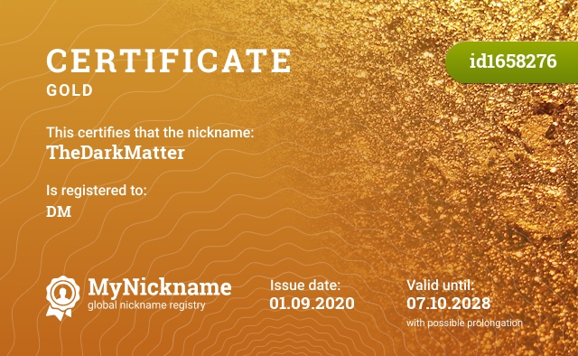 Gold ? certificate for nickname: TheDarkMatter (id1658276)