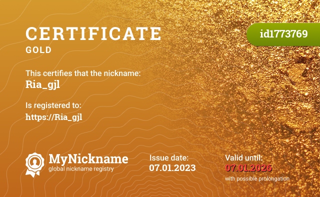 Gold ? certificate for nickname: Ria_gjl (id1773769)