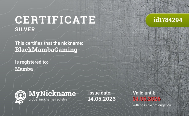 сертификат на никнейм BlackMambaGaming (id1784294)