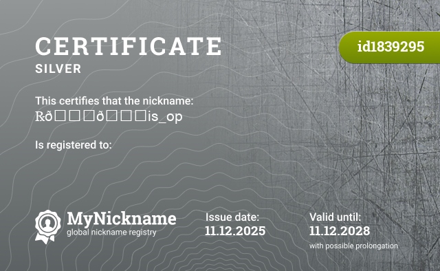 Nickname βππis_op is registered to β . Issued certificate ID1839295. Issue date 11.12.2025.