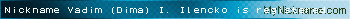 Nickname Vadim (Dima) I. Ilencko is registered to Vadim (Dima) I. Ilencko. Issued certificate ID402784. Issue date 02.06.2011.