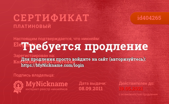 certificate for nickname: Elegante (id404265)