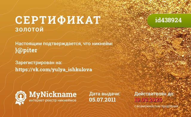 certificate for nickname: }@piter (id438924)