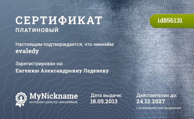 Abbreviation for the name, patronymic and surname: EV (Evgenia) A (Alexandrovna) LED (Ledeneva)