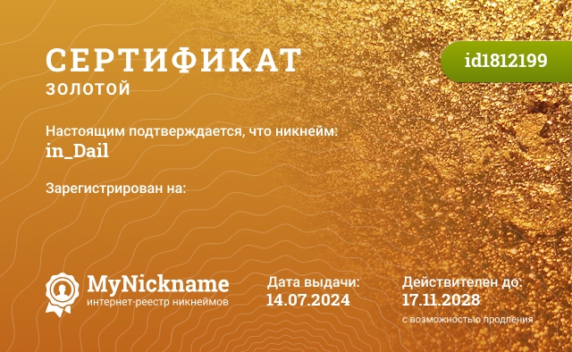Gold ? certificate for nickname: in_Dail (id1812199)