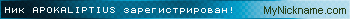 сертификат на никнейм APOKALIPTIUS (id1370796)