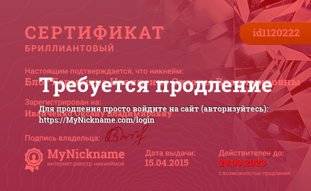 сертификат на никнейм Блог Гармошка Иванченко Оксаны Владимировны (id1120222)