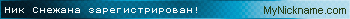 Сертификат на никнейм Снежана, зарегистрирован на Панкова Снежана
