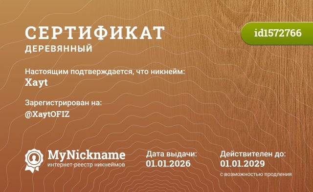 сертификат на никнейм Xayt (id1572766)