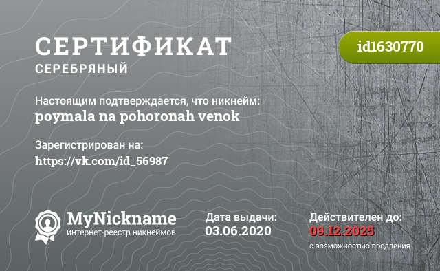 сертификат на никнейм poymala na pohoronah venok (id1630770)