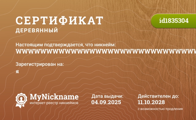 сертификат на никнейм WWWWWWWWWWWWWWWWWWWWWWWWWWWWWWWWWWWWWW (id1835304)
