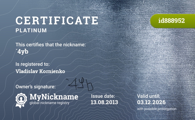 Certificates of registered nicknames with hashtag #DeadInside