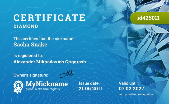 Certificates of registered nicknames with hashtag #djsashasnake