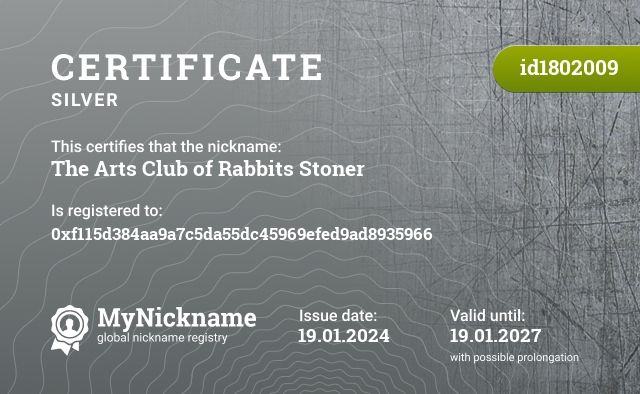 Certificates of registered nicknames with hashtag #Rabbit 🐇