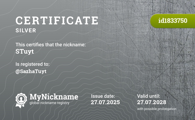Сертификаты зарегистрированных никнеймов с хэштегом #Roblox