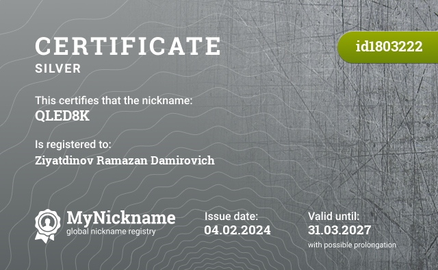 Сертификаты зарегистрированных никнеймов с хэштегом #TV 📺