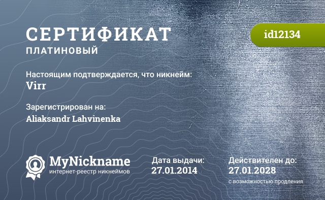 certificate for nickname: Virr (id12134)