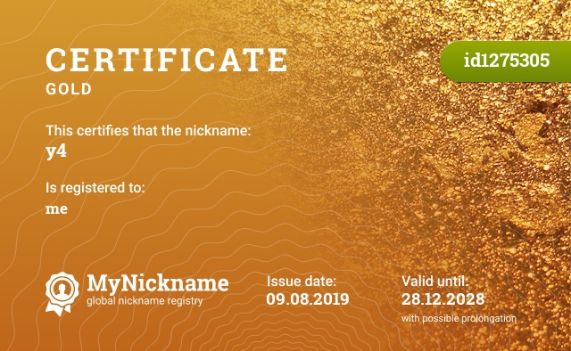 certificate for nickname: y4 (id1275305)