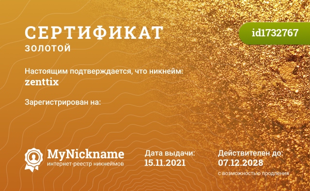 Gold ? certificate for nickname: zenttix (id1732767)
